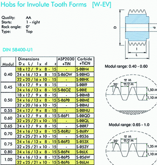 瑞士schnyder公司从1928开始致力生产精密小模数滚刀,在欧洲有较高的知名度,欧洲汽车,手表制造厂大多采用其生产的滚刀, 合金滚刀更是无人能及,能够在不使用切销油的情况下加工HRC55的材料.